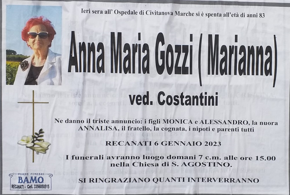 E’ morta Anna Maria (Marianna) Gozzi ved. Costantini