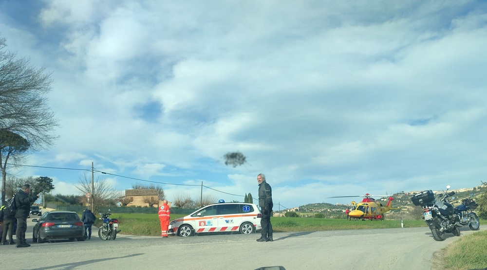 Per cause in corso di accertamento un’auto sembra aver investito una moto e il centauro, un 56enne di Recanati, è finito rovinosamente a terra. Inizialmente le sue condizioni sembravano gravi tanto che nella zona è atterrata anche l’eliambulanza partita da Torrette.