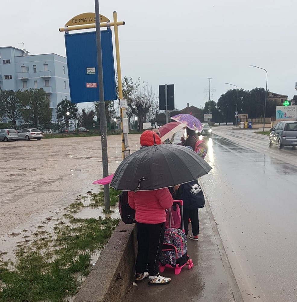Tra l’altro in questo periodo i bambini sono costretti ad attendere sul marciapiede senza una pensilina con il rischio di andare a scuola tutti bagnati