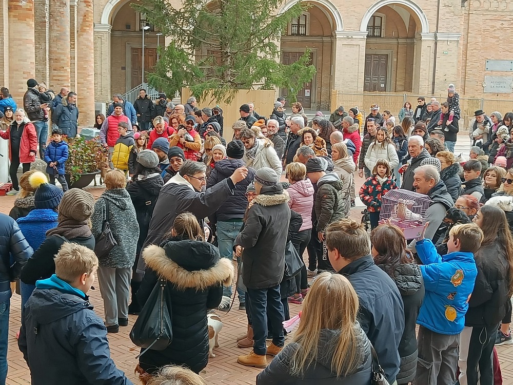 Come ogni anno si è ripetuta questa mattina a mezzogiorno in piazza Leopardi la tradizionale benedizione degli animali domestici, in occasione della ricorrenza di Sant’Antonio Abate. Molte le persone intervenute, con cani, gatti, colombe, cavalli, pony. Ad impartire la benedizione don Roberto Zorzolo, parroco di San Domenico e sant’Agostino. Insieme al prelato il sindaco Bravi e parte della sua giunta. Don Roberto ha indirizzato a tutti e tutte la preghiera, invocando la protezione divina e aspergendo con l’acqua santa il pane che, una volta benedetto, è stato distribuito con l’augurio di salute e di armoniosa convivenza.