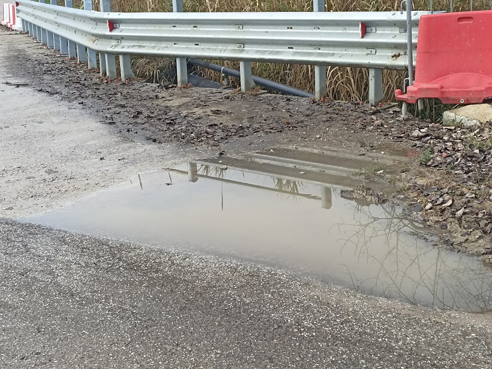 A tutt’oggi sono ancora presenti le transenne da cantiere e, in presenza di pioggia si accumula acqua che di certo non giova alla durata del ponte stesso.