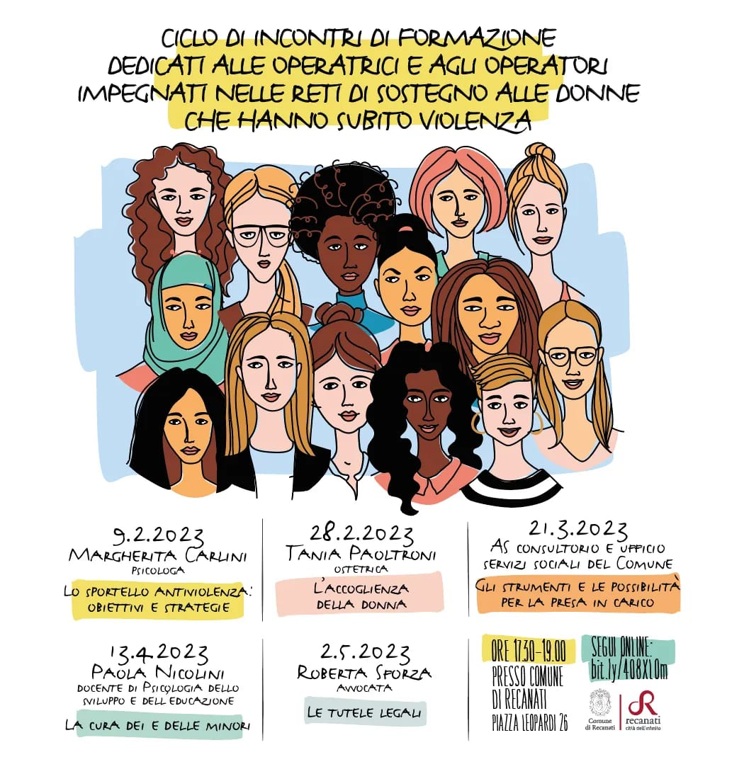 Il ciclo di conferenze che si terrà nelle sale del Comune di Recanati, prenderà il via il prossimo 9 febbraio alle ore 17.30 con l’incontro con la psicologa Margherita Carlini sul tema “Lo sportello antiviolenza: obiettivi e strategie”