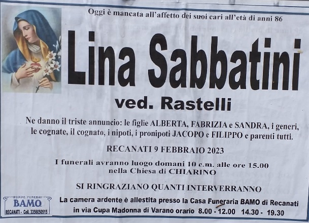 E’ morta Lina Sabbatini ved Rastelli