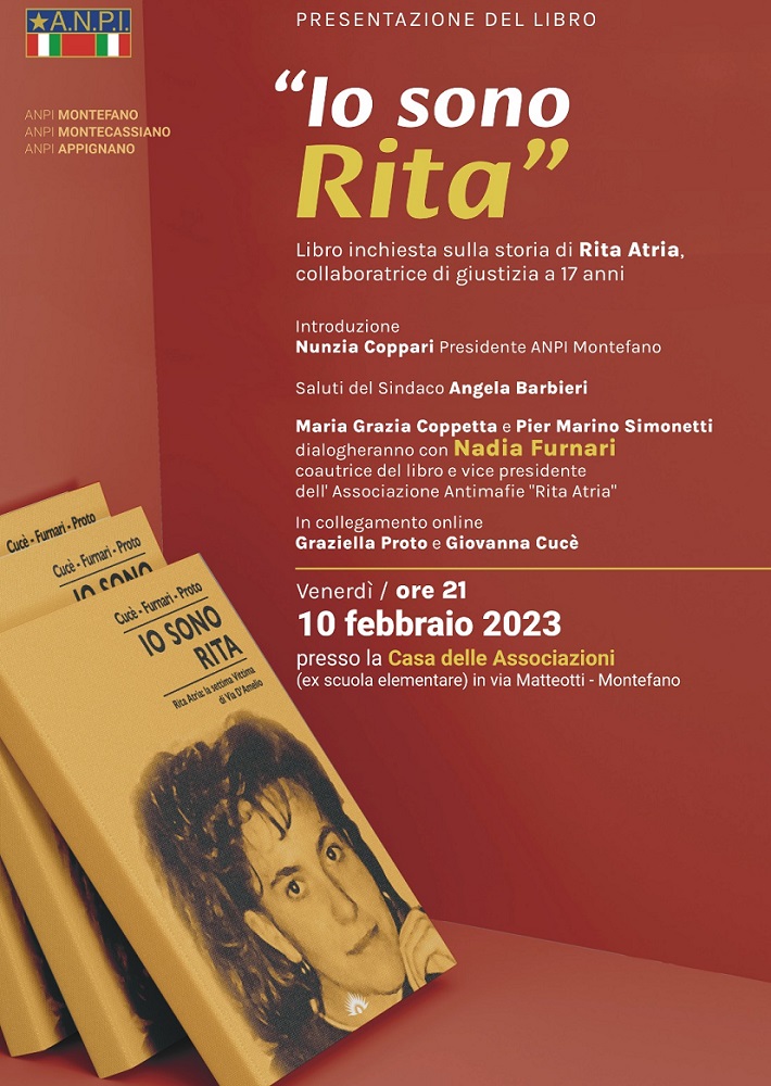 Sarà presentato oggi alle ore 21 alla Casa delle Associazioni (ex scuola elementare in via Matteotti) a Montefano “Io sono Rita”, il libro inchiesta che ricostruisce la storia di Rita Atria, collaboratrice di giustizia a 17 anni. L’evento è organizzato dalle sezioni ANPI di Appignano, Montecassiano e Montefano. La sua è una storia che parla della mafia di Partanna, cittadina siciliana dove la giovane decide di collaborare con la giustizia affidandosi al giudice Paolo Borsellino.