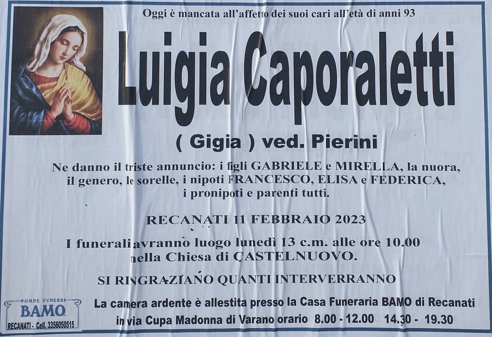 E’ morta Luigia (Gigia) Caporaletti ved. Pierini