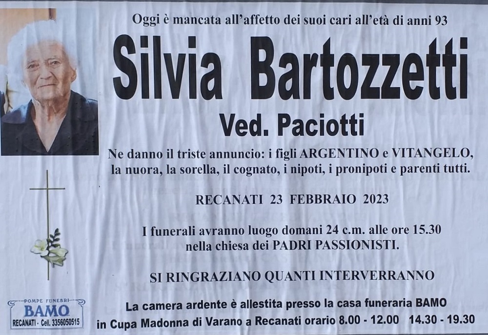 E’ morta Silvia Bartozzetti ved. Paciotti