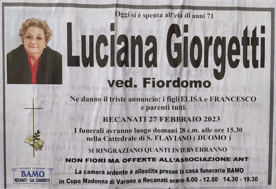 Si è spenta Luciana Giorgetti ved Fiordomo