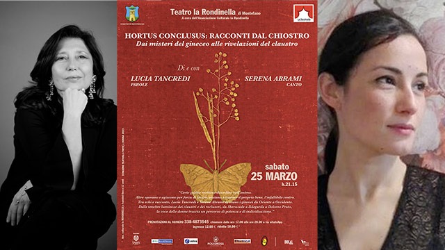 Spettacolo di grande eleganza al Teatro La Rondinella di Montefano, Sabato 25 Marzo alle 21.15, da scritti inediti di Lucia Tancredi e tessiture vocali e sonore di Serena Abrami.