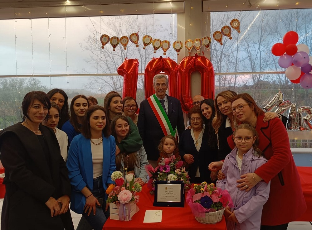 Ancora una centenaria a Recanati. Sabato scorso a raggiungere la bella età è stata Maria Foglia ved. Urbani. Per lei è stata organizzata una grande festa attorniata dai figli e dai tanti nipoti e l’immancabile e gradito omaggio del sindaco Bravi che le ha donato una targa e un mazzo di fiori.
