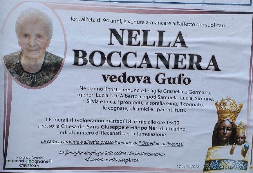 E’ morta Nella Boccanera ved. Gufo
