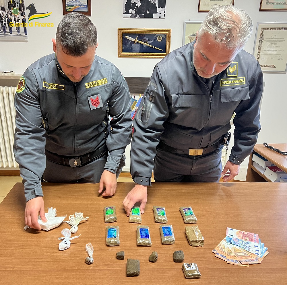 L’uomo in questione è stato trovato in possesso di 54 grammi di hashish e di 320 euro in denaro contante, ritenuti proventi del reato di spaccio e, pertanto, sottoposti a sequestro, unitamente alla sostanza stupefacente, in quanto non adeguatamente giustificati sulla base dell’assenza di redditi dichiarati, come rilevato alle banche dati in uso al Corpo.