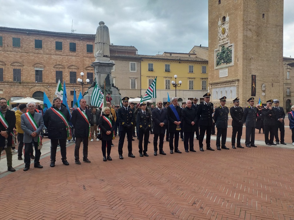 Il richiamo al valore e ai principi della Costituzione e il ricordo di tutti coloro che fecero una scelta di civiltà e di non indifferenza, pagandola a volte con la propria vita, è stato, infine, alla base del discorso degli altri due oratori, Gabriele Cardinali a nome delle organizzazioni sindacali e Francesco Rocchetti, presidente del Comitato Provinciale Anpi Macerata.