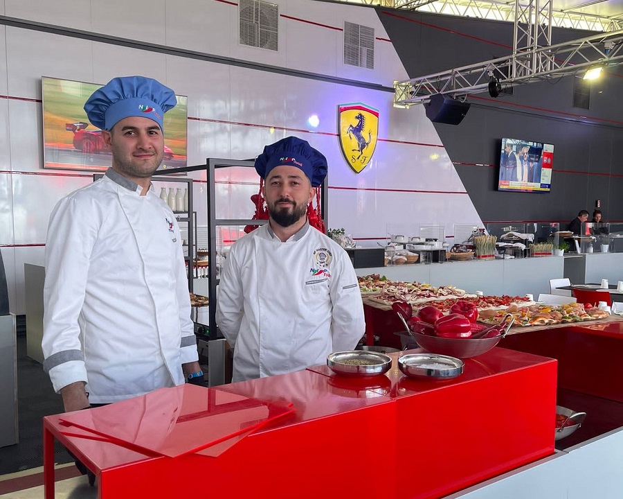 I due pizzaioli sono stati nello stand della Ferrari preparando oltre 400 pizze ai partecipanti all’evento. La nazionale italiana dei pizzaioli lavora per il Catering la Fenice di Faenza.