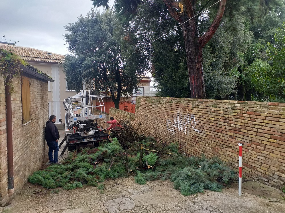 Non sono stati attivati i Vigili del Fuoco perché la via, troppo stretta, non permette l’accesso dei grossi mezzi. Per tutto il pomeriggio, e presumibilmente anche domani, è stata al lavoro una ditta locale che è intervenuta con mezzi più agevoli provvedendo ad alleggerire la pianta con il taglio di parecchi rami e mettendo, così, in sicurezza la zona. Domani, tempo permettendo, completeranno l’opera con l’abbattimento totale della pianta.