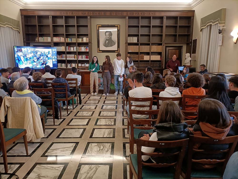 Nella mattinata di Mercoledì 3 maggio u.s. il Centro Nazionale di Studi Leopardiani di Recanati si è riempito di giovani! L’occasione è stata l’Evento finale del Corso Docenti “La scrittura delle donne. Le Marche”, della Rete di scuole CompitaMarche, di cui è capofila il liceo recanatese. La coinvolgente relazione del Prof. Lorenzo Abbate su Paolina Leopardi, è stata seguita da una fantasmagoria di 17 progetti presentati da docenti e studenti delle Marche su alcune scrittrici marchigiane. 23 le classi coinvolte, appartenenti a 14 scuole Secondarie di Primo e Secondo grado, e oltre 50 quelle collegate da remoto.