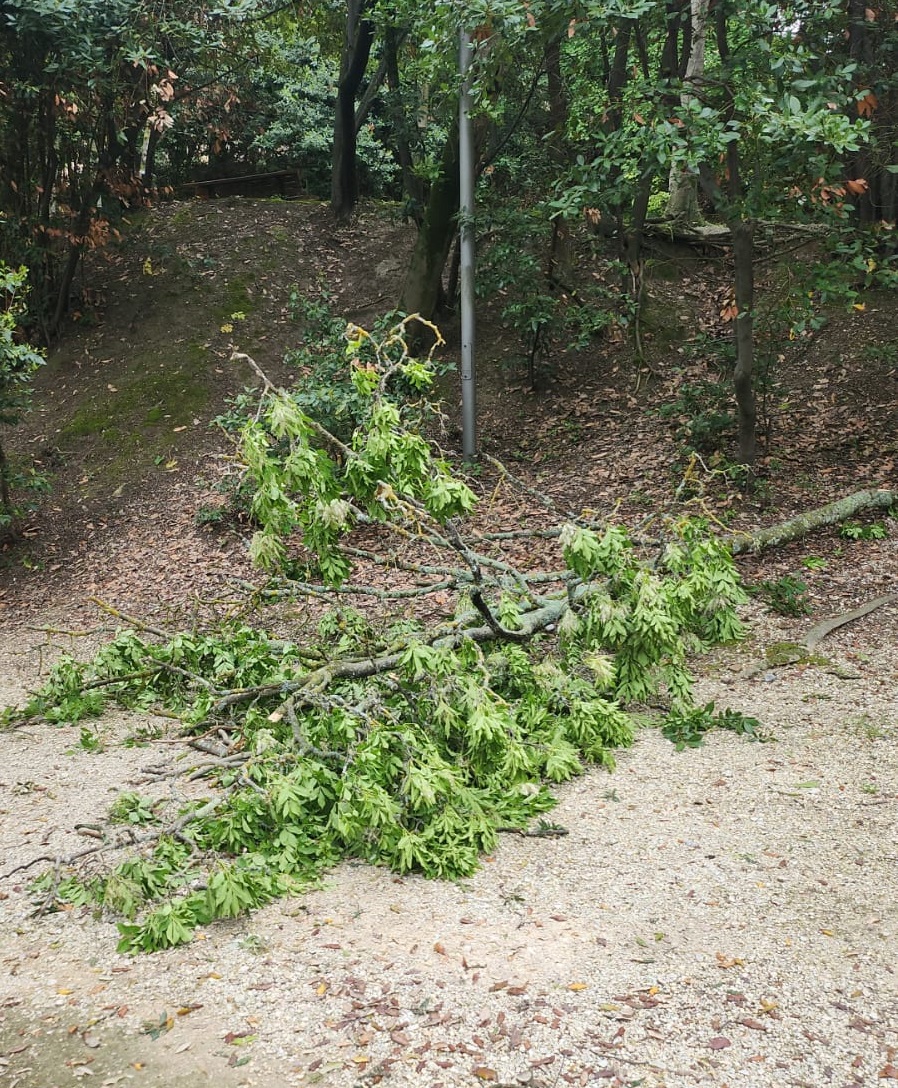 Grossi rami caduti anche all’interno del Parco di Villa Colloredo Mels a Recanati e dissestata via F.lli Farina