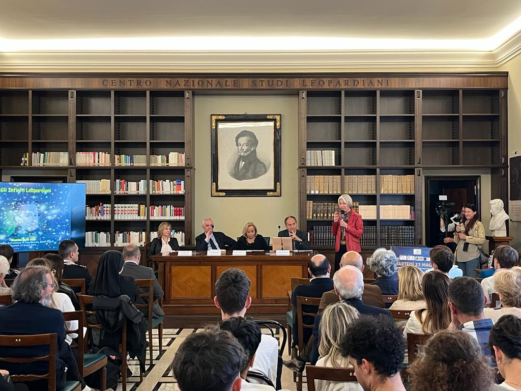 Ieri pomeriggio l’incontro “Gli Infiniti leopardiani” nella sala Foschi del Centro Nazionale di Studi Leopardiani, guidato dal presidente Fabio Corvatta, si è rivelato un grande successo, al punto di tenere inchiodato il pubblico fino a tarda serata. Pubblico composto in grande parte dagli studenti del Liceo classico Leopardi ed anche da addetti ai lavori : non è passata inosservata la presenza dell’on Angelo Tiraboschi, “qualche” anno fa, nella sua qualità di presidente della commissione Bilancio della Camera, sostenitore di una legge che ha poi dato il via libera ai finanziamenti per l’internazionalizzazione dell’attività del Cnsl. L’incontro è stato preceduto dai saluti dell’assessore alle Culture del Comune di Recanati Rita Soccio, di Annamaria Marcantonelli, dirigente scolastico del Liceo classico recanatese, di Alessandra Toilo, property manager del Fai Orto sul Colle dell’Infinito e dagli interventi della professoressa Fabiana Cacciapuoti della Biblioteca Nazionale di Napoli e di Laura Melosi docente di Unimc. Poi spazio a Della Valle che ha conquistato i presenti con una dotta e brillante lezione partita da un Leopardi quindicenne autore di un trattato dell’astronomia, basato sulla lettura di 200 testi e con duemila riferimenti bibliografici e conclusasi con l’Infinito. «La precocità è il segno della genialità» ha osservato l’astrofisico Della Valle. Meraviglia, conoscenza e mistero sono i tre pilastri da cui Della Valle è partito per abbinare la visione leopardiana del mondo a quella della scienza sottolineando come l’interesse del piccolo Giacomo per l’astronomia possa essere nato da due eventi straordinari cui ha assistito, l’eclissi del 1804 e la grande cometa del 1811. «La scienza non è altro che un lungo cammino che porta alla scoperta della nostra ignoranza» scrive Leopardi che alcuni anni dopo approderà all’Infinito e a quegli interminati spazi che fanno sentire l’uomo solo di fronte all’immensità dell’universo. Della Valle chiude con una frase di grande impatto emotivo: «Caro Leopardi, non sei solo, sei unico».