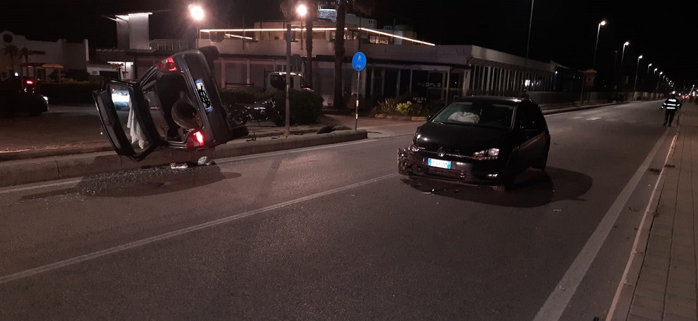 Poco prima della mezzanotte, verso le 23,20, a Porto Recanati lungo viale Scarfiotti, nei pressi della discoteca Mia, per cause in corso di accertamento si è registrato un frontale fra due Volkswaghen Polo, una delle quali si è ribaltata.