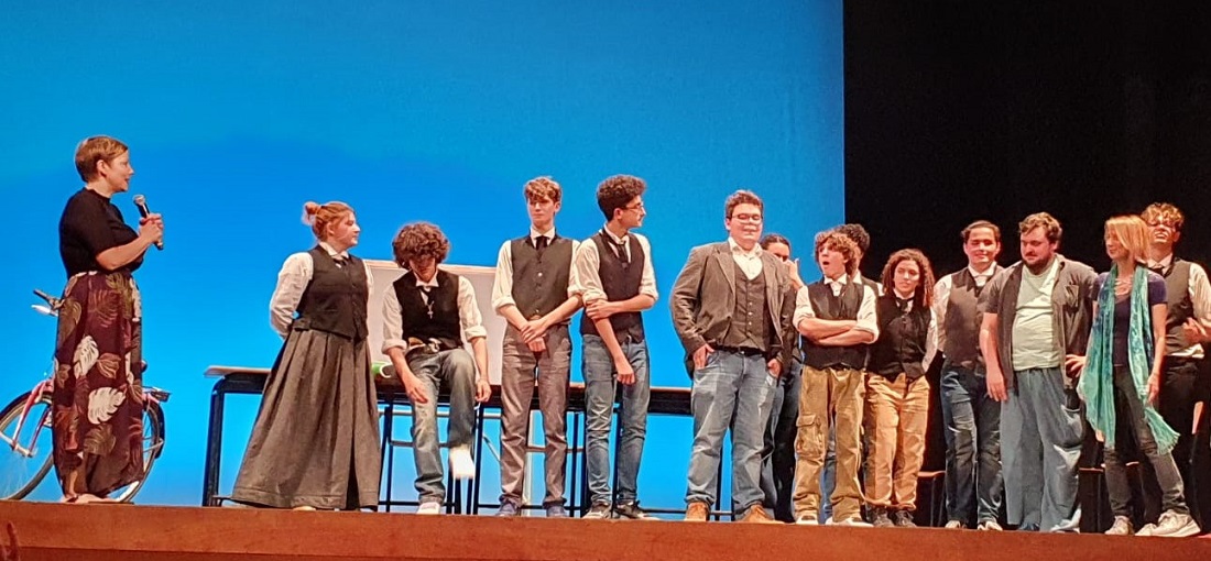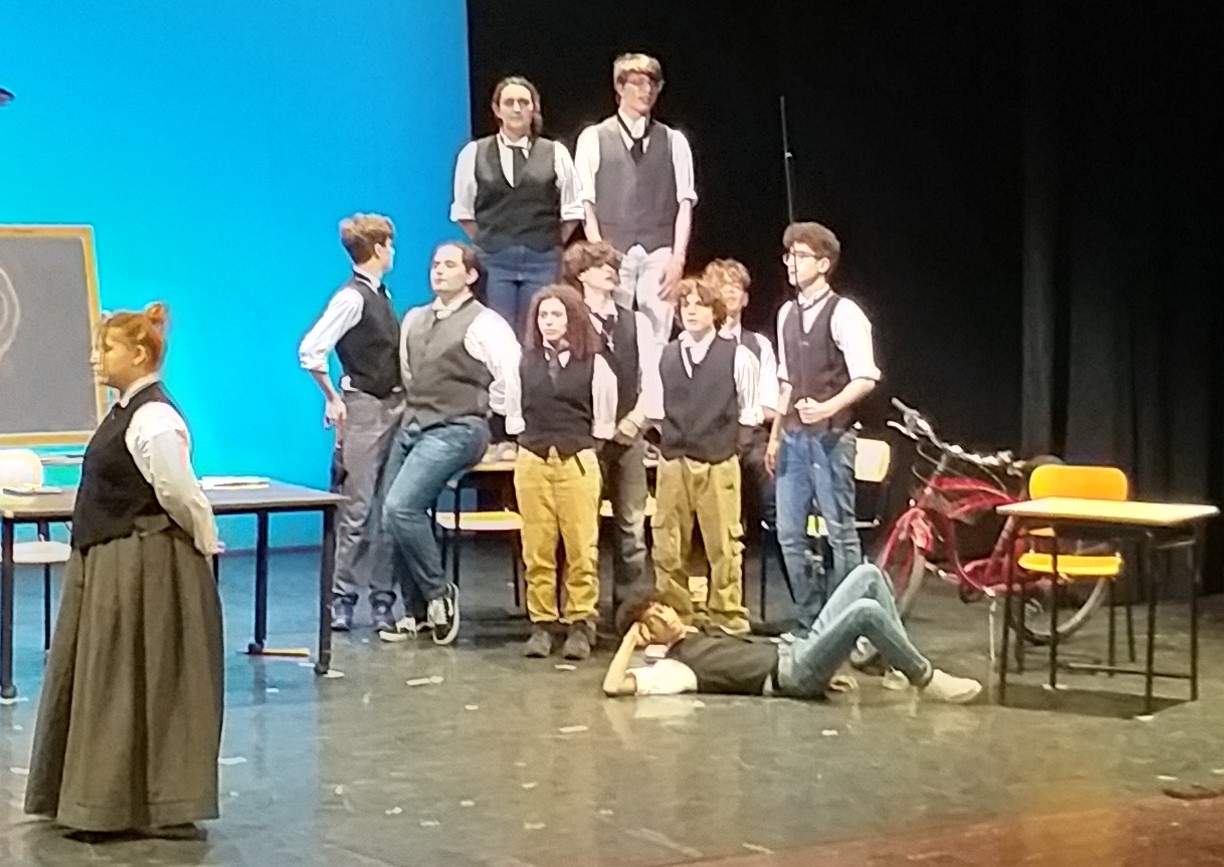 Non sono mancati, inoltre, effetti speciali e colpi di scena, come gli spari a salve, che hanno sorpreso, talvolta “spaventato” e tenuto il pubblico con il fiato sospeso fino all’ultimo secondo. Grazie all’interpretazione magistrale degli studenti, sul palco visibilmente divertiti, nonostante l’emozione, gli spettatori si sono immersi nel mondo di Alfred Jarry e di Ubu Re e si sono sentiti pure loro, almeno in parte, potaches farouches (potache, cioè lo scolaro adolescente e il suo universo, un tumulto di volgarità, insubordinazione, confusione e spesso di creatività e farouche, aggettivo in cui si mescolano i significati di selvatico, feroce, indomabile, ma anche di imbronciato, ritroso, timido).
