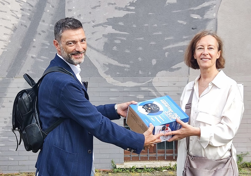 Simone e Paride sono venuti per DONARE al Centro Fonti San Lorenzo un DAE, un defibrillatore da esterno, rendendo così ancora di più la realtà di “Fonti” un luogo sicuro che può essere vissuto a pieno dalle centinaia di persone che lo attraversano ogni giorno. Un momento emozionante e significativo, un passo ulteriore per tutta la comunità che vive i nostri spazi, rappresentata nelle foto da Tiziana Marinelli e Corinna Hertel, volontarie e membre del Direttivo dell’associazione.