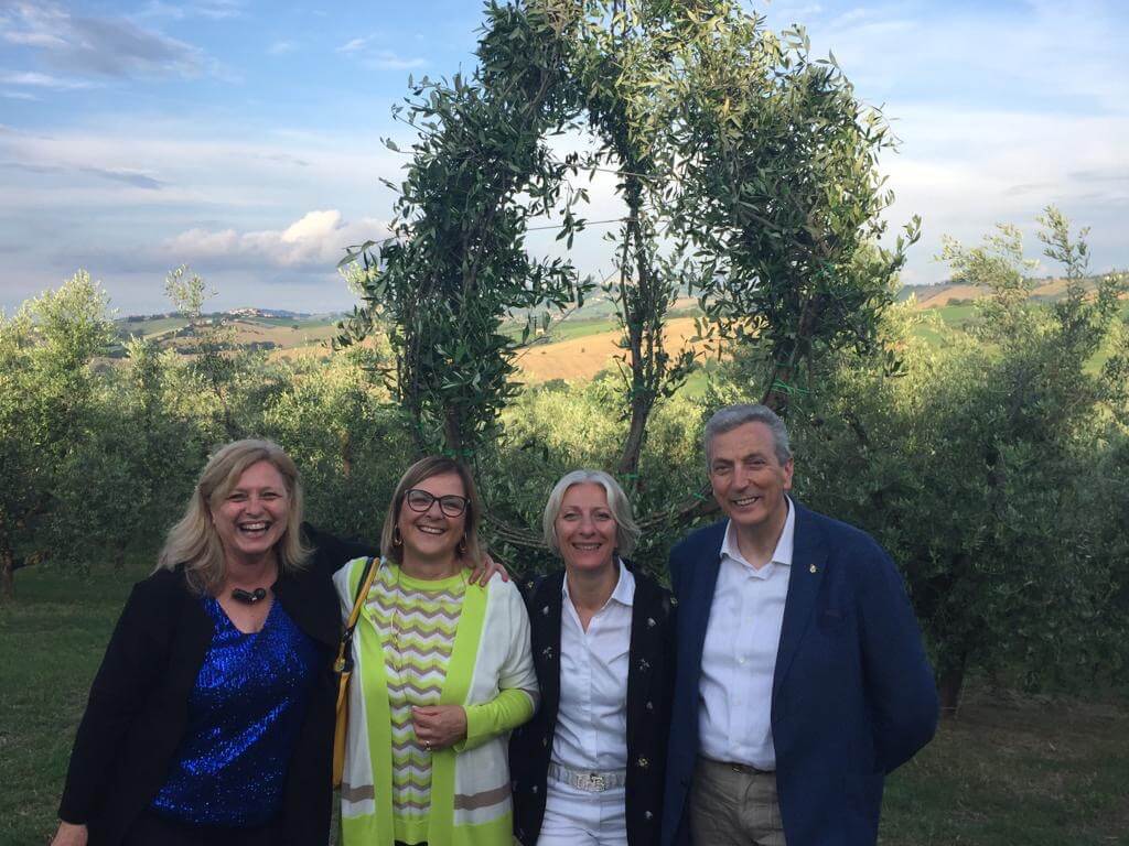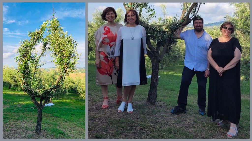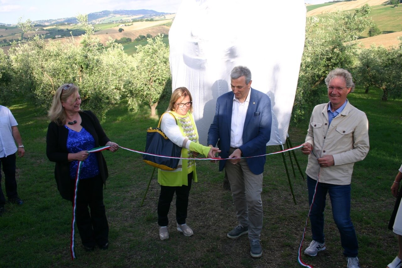 È un olivo la prima arboscultura che ha inaugurato sabato 10 giugno il progetto Panorama in cornice-percorsi di Land Art e arbosculture. L’albero, in vita da 25/30 anni nell’oliveto dell’Agriturismo Al Cepuscolo, è stato donato generosamente dalle Sorelle Gabrielloni, Elisabetta, Gabriella e Sonia, titolari del famoso e pluripremiato frantoio, per il loro amore verso l’arte. Il progetto, pioneristico e sperimentale per Recanati (al momento l’unico esempio in Italia si trova nel campus del Politecnico di Milano e si completerà tra 60 anni), mira a valorizzare il potenziale culturale e turistico del territorio. “Un campo agricolo può e deve essere migliorato anche con queste opere. Mettere a disposizione un olivo in produzione e vederlo plasmare secondo forme estetiche ci arricchisce intellettualmente. Lavorare a fianco della natura è un privilegio. Modellarla secondo forme estetiche come vuole l’arboscultura è un modo per esaltare il bello che già ci dona e attirare i meno avvezzi alla meraviglia di un ambiente ricco di emozioni.” Ha dichiarato Elisabetta Gabrielloni. Poi si rivolge ai politici lanciando il monito di valorizzare le Marche e sostenere coloro direttamente impegnati sul territorio in ambito enologico, oleare e agricolo perché il “bello” visto dal turista è il prodotto del lavoro sull’ambiente e sulla terra circostante. Le arbosculture invitano a meditare e riflettere sulla crisi del nostro ecosistema e, quindi, a cambiare il nostro approccio “impoetico” dell’abitare associato alla perdita di suoli o il loro degrado e sfruttamento dovuto a una cultura dominante che si è rivelata inadatta nel tutelare l’ambiente. “Le dolci colline recanatesi rappresentano un patrimonio di natura, bellezza e terra di produzione grazie alla fiorente agricoltura con campi coltivati, vitigni, uliveti, alberi da frutto, ortaggi e cereali. Come proteggerle? Con le opere d’arte perché grazie al gesto creativo questo luogo da contenitore diventa parte integrante dell’opera stessa. E l’arte non va mai violata ma protetta nel migliore dei modi” ha commentato durante la presentazione la giornalista e curatrice Nikla Cingolani, ideatrice del progetto messo a punto e definito dal land artista Roberto Viale. Recanati è famosa per aver dato i natali all’illustre Poeta Giacomo Leopardi e al popolarissimo tenore Beniamino Gigli. Per questo dopo il taglio del nastro, il tenore inglese Robin Jeffcoat, con una passione per il belcanto, ha reso omaggio a Gigli interpretando la romanza dal titolo “Ideale” di Francesco Paolo Tosti. L’arboscultura prossimamente sarà protagonista di visite guidate per scoprire un paesaggio che rappresenta autenticamente poesia e musica.