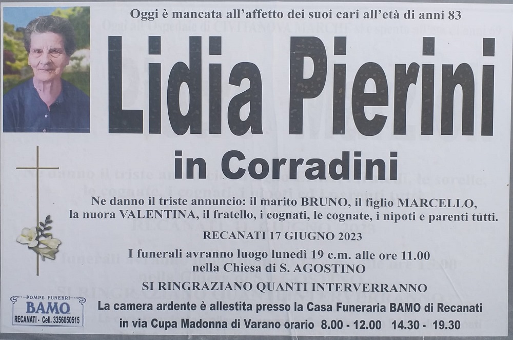 E’ morta Lidia Pierini in Corradini