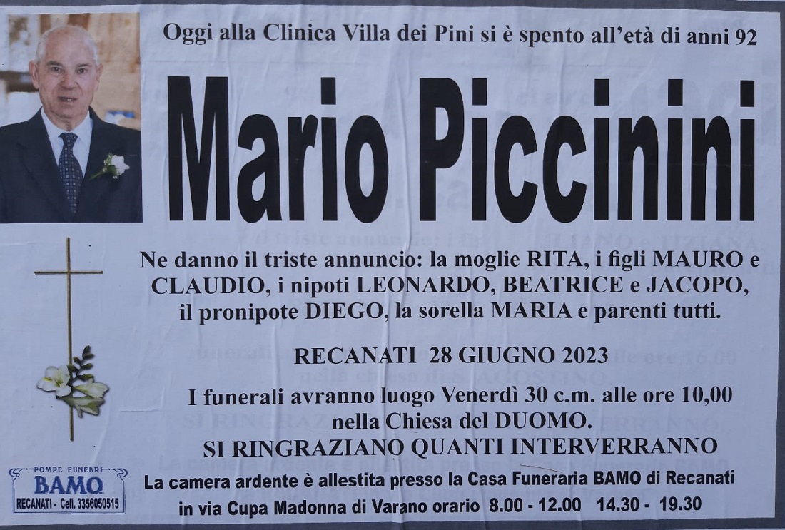 E’ morto Mario Piccinini