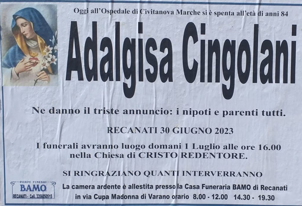E’ morta Adalgisa Cingolani