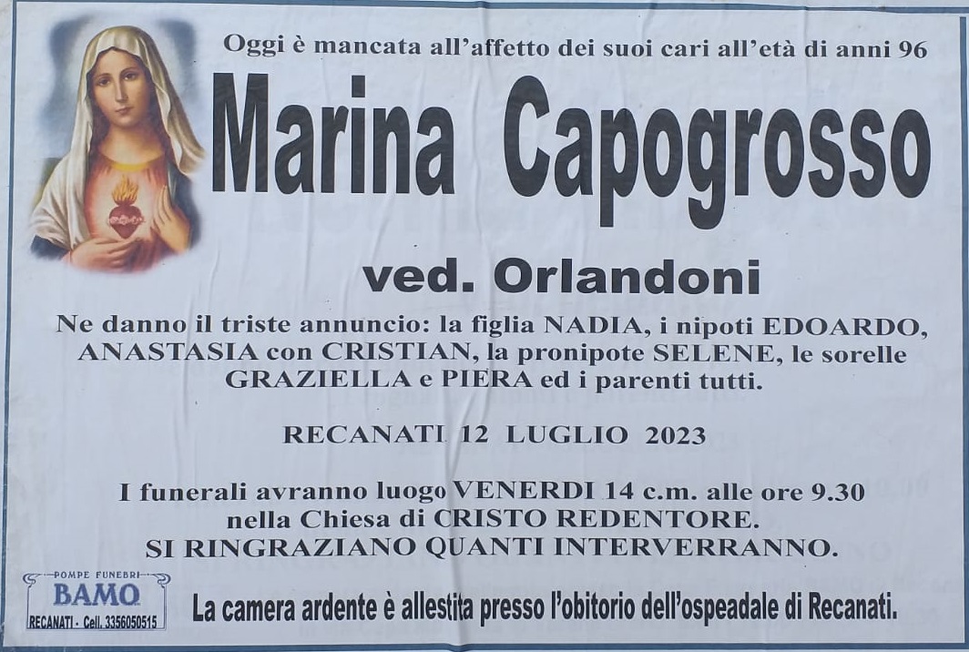 Home » E’ morta Marina Capogrosso ved. Orlandoni