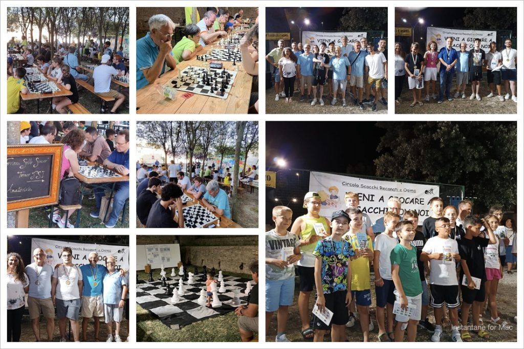 Una giornata, sottolineata dal presidente del Circolo Scacchi Vincenzo Bondanese nei ringraziamenti di apertura e chiusura della manifestazione, frutto della collaborazione da 10 e lode tra il comitato di quartiere “Rione Mercato” e il Circolo Scacchi Recanati-Osimo-Offagna (CSRO-O) che ha regalato, in un torrido pomeriggio e fresca notte di questa estate, emozioni, gioia, amicizia, condivisione, studio e divertimento nell’insegna del più antico e immortale gioco e sport della mente: il gioco degli scacchi!