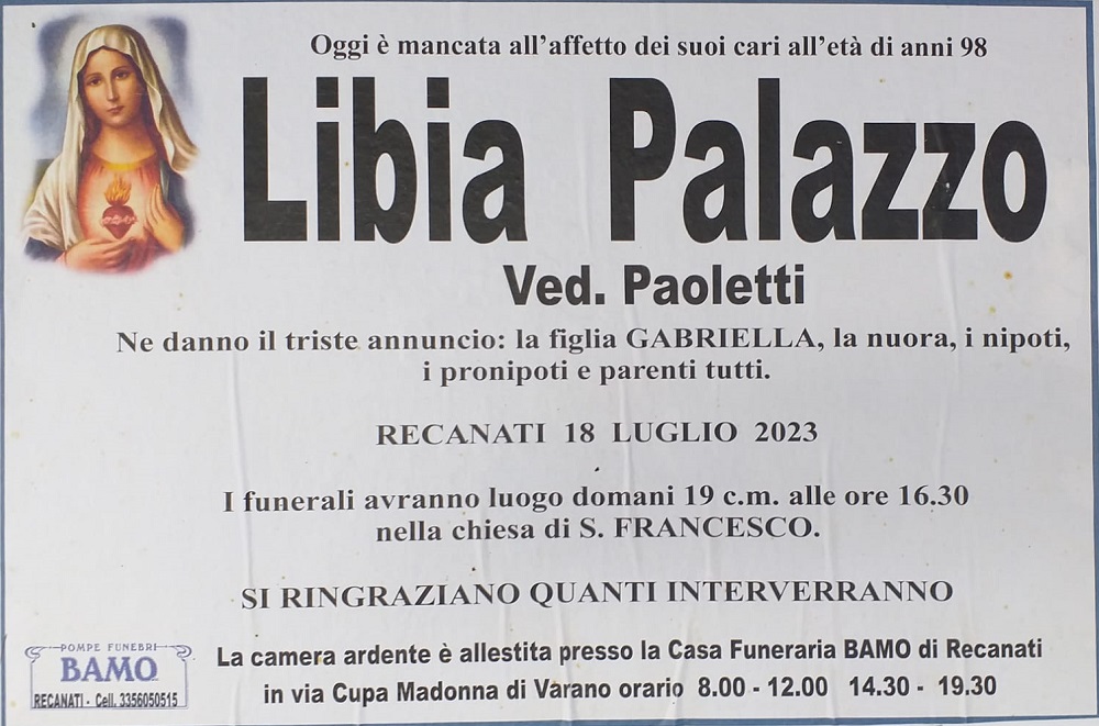 Home » E’ morta Libia Palazzo ved. Paoletti