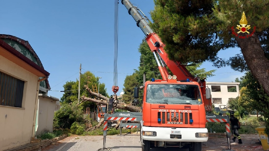 I vigili del fuoco sono intervenuti questa mattina in via Buffolareccia a Loreto per un grosso pino caduto sulla sede stradale e che centrato in pieno un’auto in sosta.  Allertato il 115, sul posto è intervenuta la squadra di Osimo con, in supporto, anche il personale dalla sede centrale di Ancona arrivata con l’autogru.