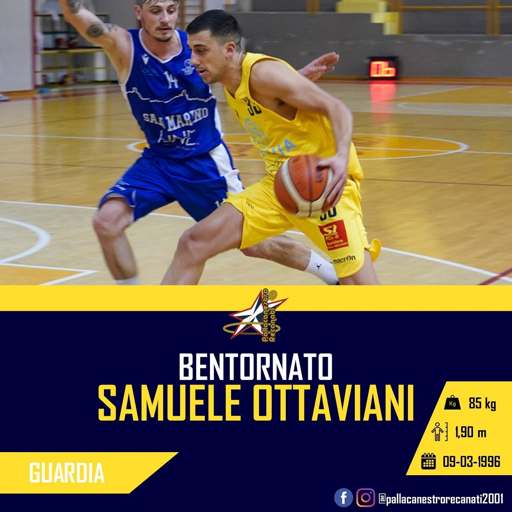 La Svethia Recanati รจ lieta di annunciare lโaccordo con lโatleta Samuele Ottaviani ala di 196 cm, classe 1996, che torna cosรฌ a vestire il gialloblu ad un anno di distanza dalla stagione 2021/2022 culminata con la semifinale playoff contro San Marino e 6,4 punti di media.