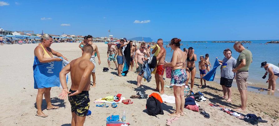 Su iniziativa dell’Associazione di Pesca Sportiva “Barracuda” di Porto Potenza Picena, in collaborazione con l’AmaDown (Associazione Marchigiana Persone con Sindrome di Down), la Union Picena Calcio e la Municipalizzata Azienda Servizi Potenza Picena -A.S.P.P., una ventina di ragazze e ragazzi con disabilità psico – motorie hanno potuto trascorre una giornata speciale al mare, o meglio…in mare!