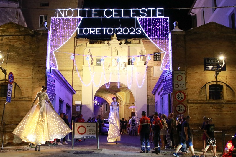 anche i commercianti, che hanno esposto nelle vetrine dei negozi decorazioni celesti fornite da Confcommercio Marche Centrali. Un grande evento reso possibile anche grazie al sostegno di molti partner cittadini: la Loreto Multiservizi, che anche quest’anno è stata main sponsor della Notte Celeste, e quindi la Fondazione Opere Laiche, la Fondazione Carilo, la Pro Loco, Amat e Si con Te. L’organizzazione del format è stata anche per il 2023 a cura di Futura Unisce – Eventi Live di Nevio Russo.