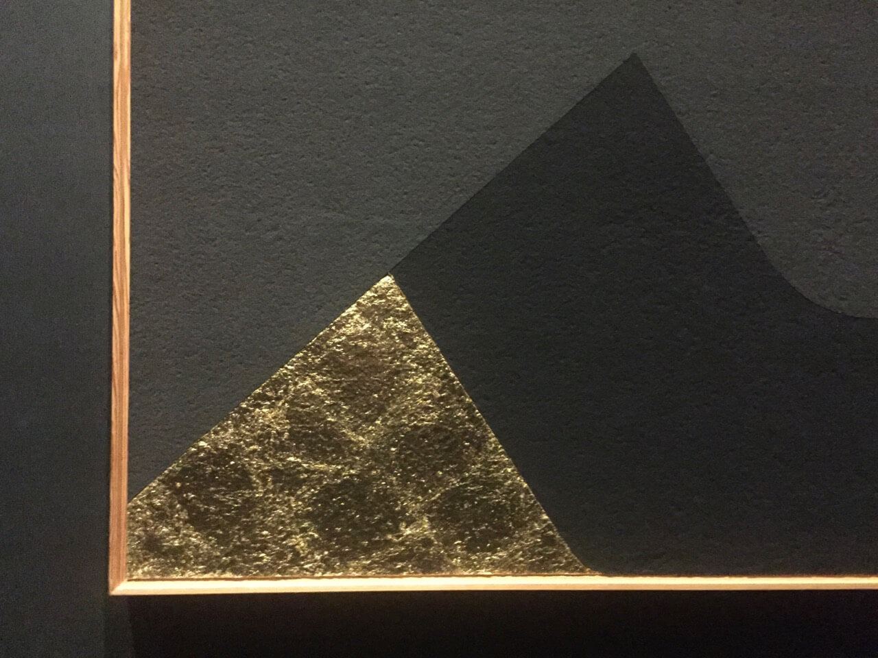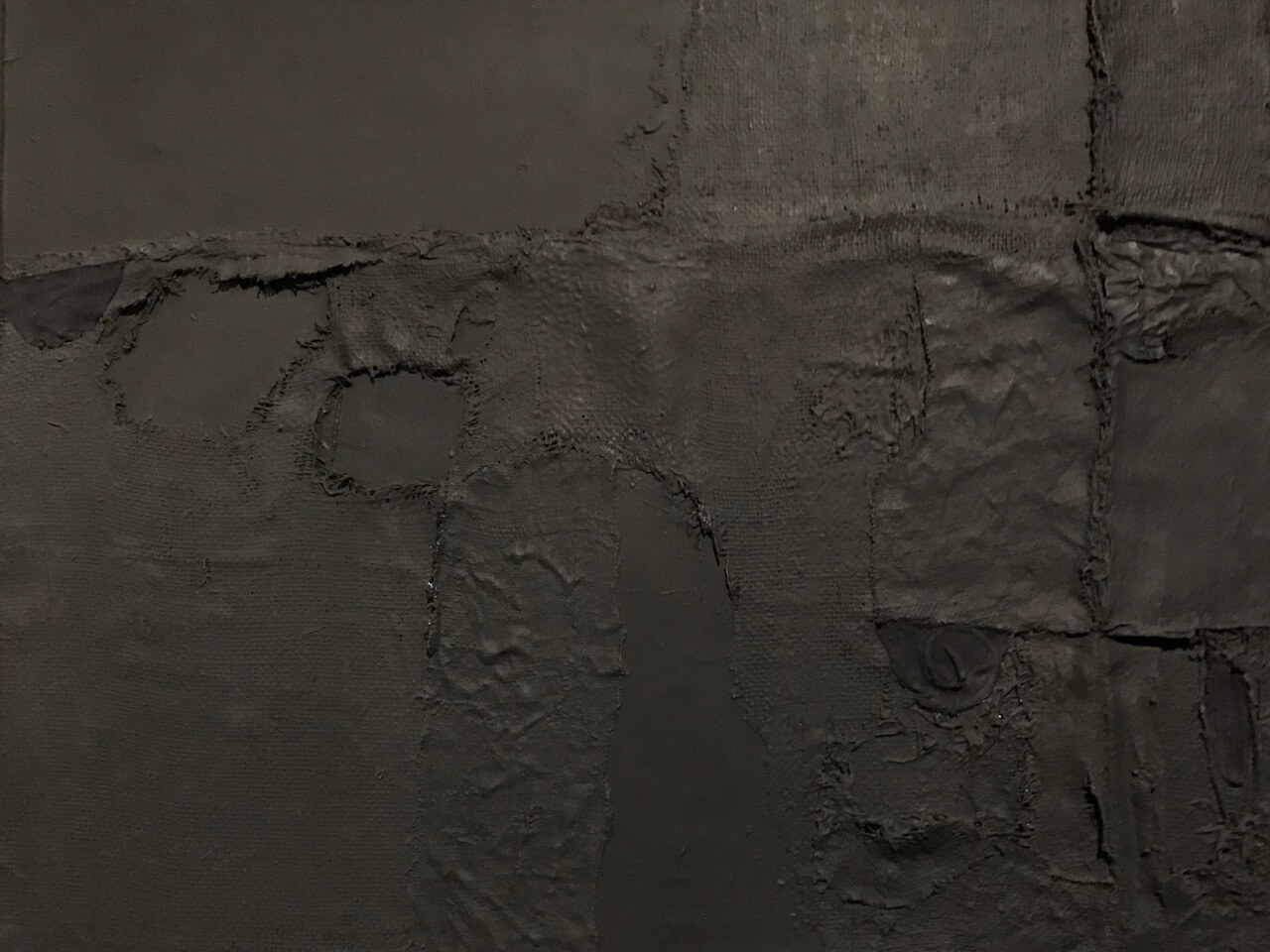 Per Alberto Burri il nero è il vero soggetto delle opere qui esposte. Burri il “maestro dei neri”, l’artista che amava Annottarsi (titolo di opere pittoriche del 1987), analizza i vari livelli di profondità e sacralità del Nero attraverso la materia-colore modulata da toni su toni, da forme plurime e differenti nate dalla sua fervida immaginazione. Sono immagini solenni e grandiose che suscitano stupore e mistero. Nelle due opere a fine mostra Burri inserisce nel Nero una sottile foglia oro che richiama alla mente l’arte bizantina o il culto alchemico. Burri è un artista “classico”. Nelle sue opere si riscontrano la sua conoscenza dell’arte italiana rinascimentale e un’attenzione particolare per gli elementi geometrici, per l’analisi compositiva e il suo equilibrio, compreso il particolare utilizzo dello spazio come nei più grandi artisti rinascimentali.