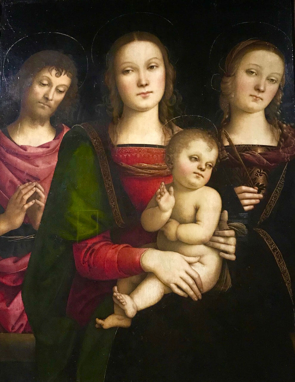 La mostra organizzata in occasione del Cinquecentenario dalla morte del Perugino, è nata da un’idea della Fondazione Perugia e realizzata in collaborazione con Fondazione Burri. I curatori Vittoria Garibaldi storica dell’arte e Bruno Corà Presidente di Fondazione Burri, hanno trovato nell’opera del Perugino “Madonna con il Bambino e due cherubini”, una pregiata tavola dal sapore intimo e familiare conservata proprio nella collezione permanente di Fondazione Perugia, l’inizio per indagare sull’uso dello sfondo nero in alcune opere del Perugino, tutte di piccolo formato e datate a cavallo tra il XV e il XVI secolo. La ricerca ha permesso di ottenere importanti prestiti, come lo splendido Ritratto di Francesco delle Opere, probabilmente dipinto a Venezia, e il Ritratto di giovinetto, provenienti dalla Galleria degli Uffizi, e ancora la Madonna con Bambino tra San Giovanni e Santa Caterina del Museo del Louvre.