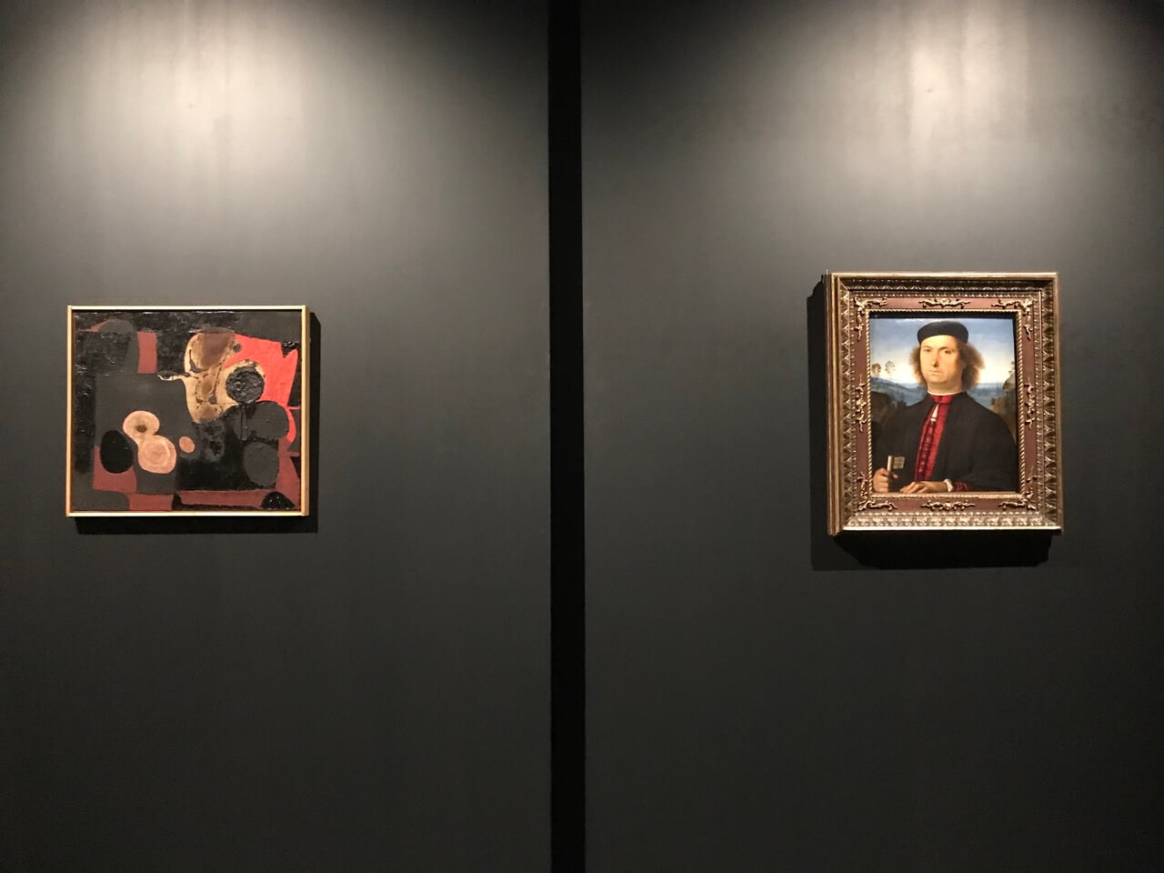 Questa mostra mette in dialogo le opere dei due grandi maestri umbri. Pietro di Cristoforo Vannucci, noto come il Perugino o il divin pittore, usa il Nero come fondo per isolare i personaggi rendendoli emblematici. Nelle opere in mostra non troveremo sullo sfondo, come nei suoi migliori dipinti, architetture prospettiche o dolci colline punteggiate da alberelli delicati e frondosi tipici della scuola umbra, con le montagne lontane sfumate secondo le regole della prospettiva aerea, ma solo una profonda oscurità da cui emergono figure di straordinaria bellezza e spiritualità.
