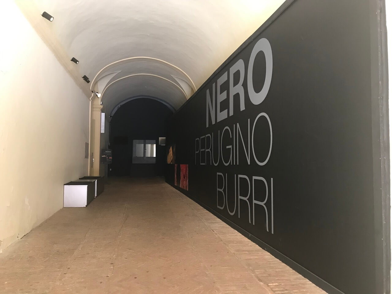 Nel piano nobile di Palazzo Baldeschi a Perugia è in corso fino al prossimo 2 ottobre la raffinata ed emozionante mostra Nero Perugino Burri, un dialogo tra le opere di due grandi artisti umbri nati in periodi diversi ma accomunati dall’utilizzo del colore nero.