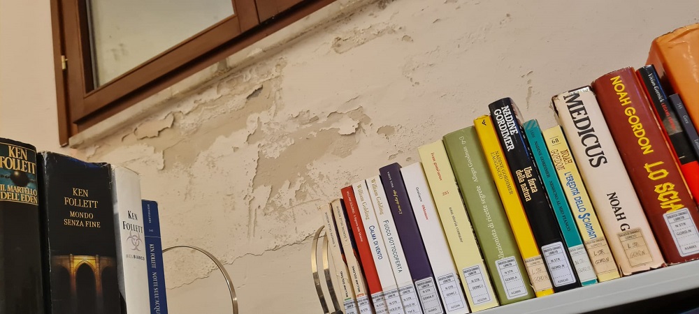 Nel report che Castagnani ha fatto nell’ultima visita si possono notare libri praticamente bagnati, ingialliti, con bolle di muffa ed emananti cattivo odore. Non parliamo poi dei muri, soprattutto quello rivolto verso via Brancondi e l’adiacente scalinata, scrostati e anneriti oltre che emananti un persistente cattivo odore. Una frequentatrice della biblioteca, ho assistito io personalmente, prosegue Castagnani, ha rinunciato a prendere alcuni libri perché intoccabili e ormai deteriorati, pur servendo essi, al suo scopo di ricerca.