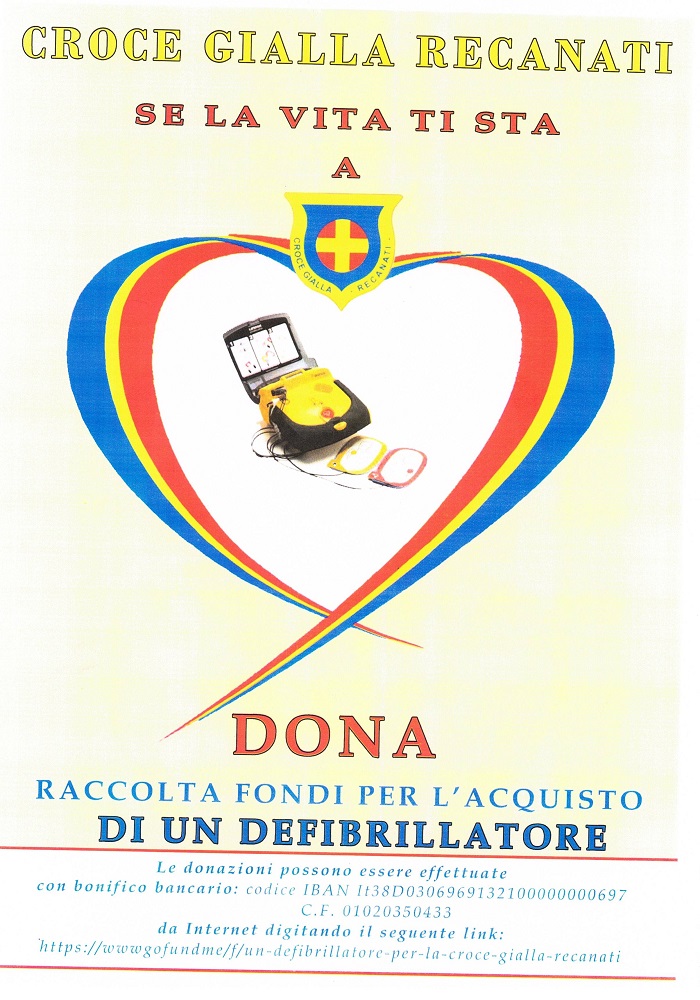 “La Croce Gialla di Recanati ha aperto una raccolta fondi per l’acquisto di un nuovo defibrillatore.