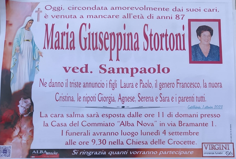 E’ deceduta Maria Giuseppina Stortini ved. Sampaolo