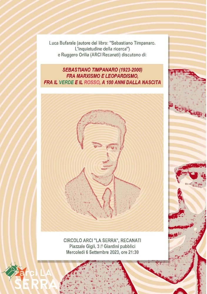 Sebastiano Timpanaro (1923-2000), fra marxismo e leopardismo, fra il rosso e il verde, a 100 anni dalla nascita ( evento Facebook: https://fb.me/e/xDviX1r2 ).