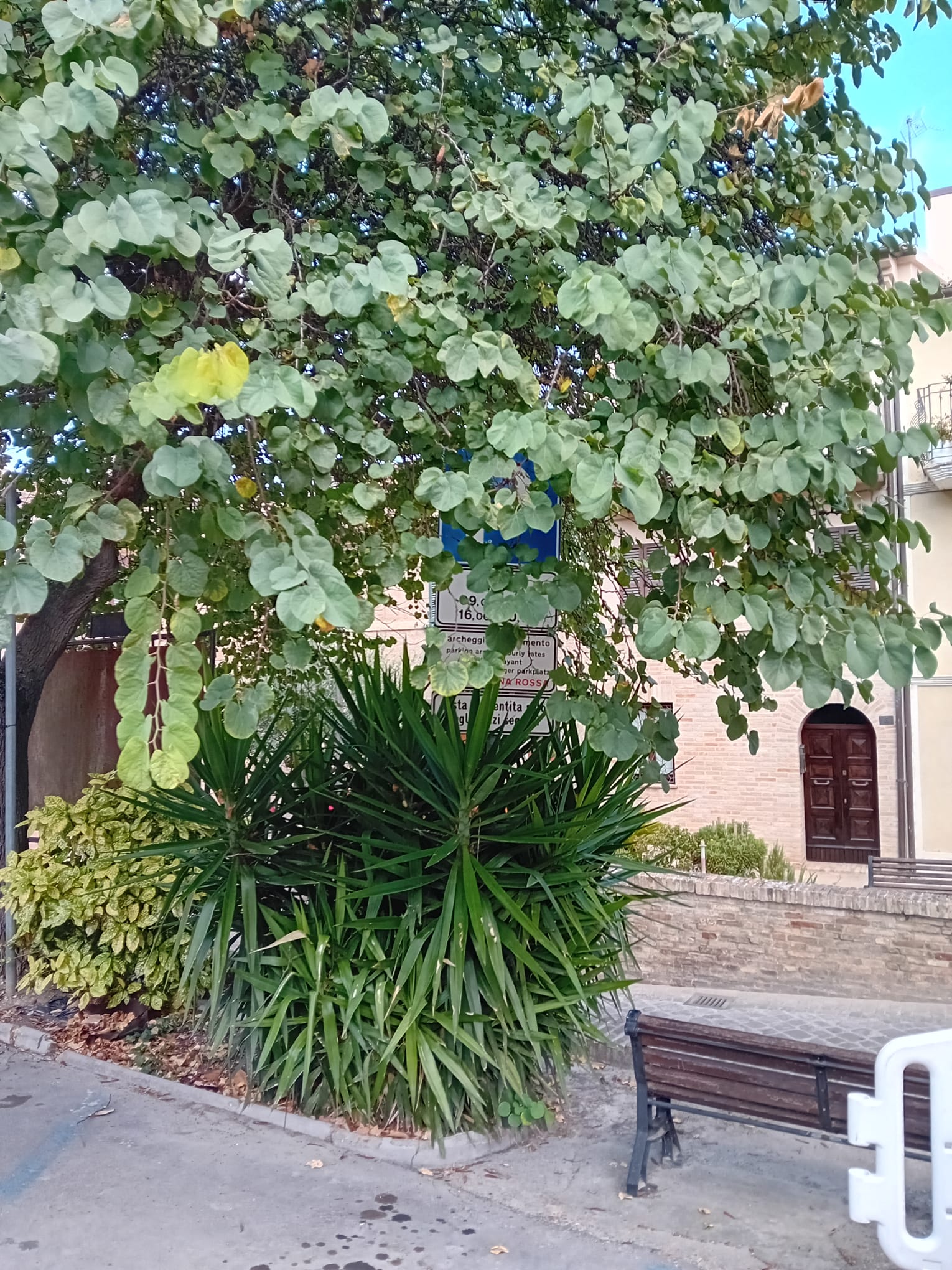 Quando la natura prende il sopravvento, ecco che scompaiono alla vista dei poveri automobilisti anche la segnaletica stradale! È il caso di piazzale Monaldo Leopardi dove il cartello che indica le modalità di sosta, e cioè come e dove pagare il ticket e l’importo dello stesso in base all’orario di sosta e al colore del parcheggio (la zona può essere di tipo rosso o blu: nel primo caso la tariffa oraria è di un euro mentre nel secondo è di 1.20 euro) è completamente coperto dalla folta chioma di un albero.