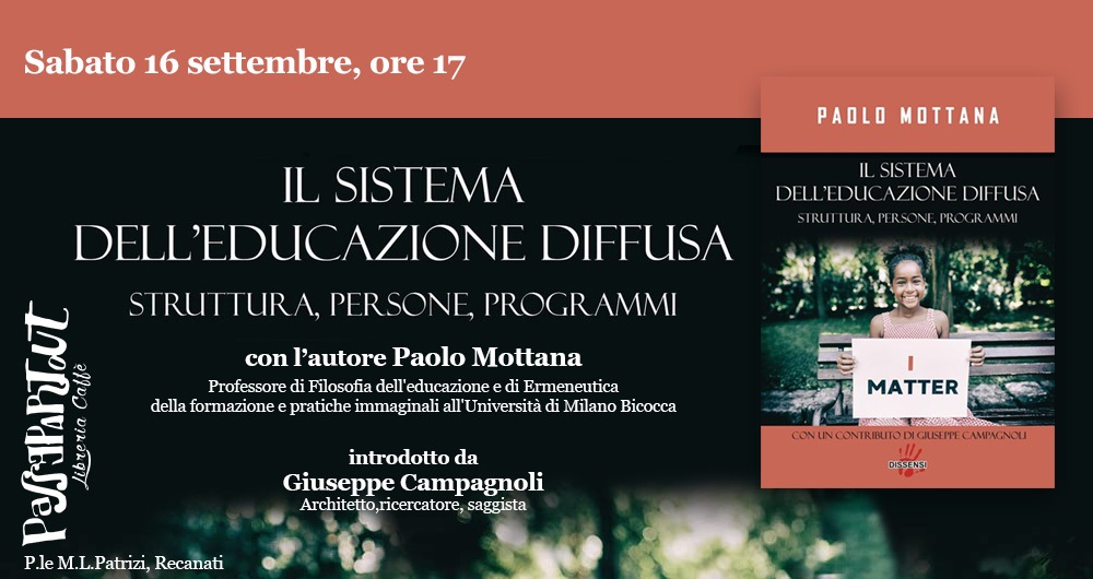 Sabato 16 settembre alle ore 17 presso la libreria Passepartout saranno ospiti Paolo Mottana e Giuseppe Campagnoli per la presentazione del libro “Il sistema dell’educazione diffusa” (Dissensi ed. 2023).