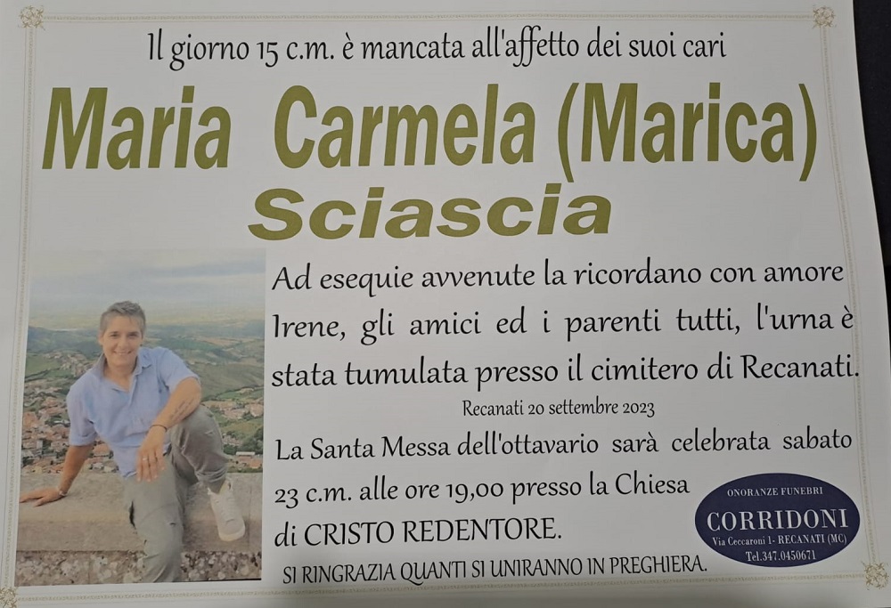 E’ morta Maria Carmela (Marica) Sciascia