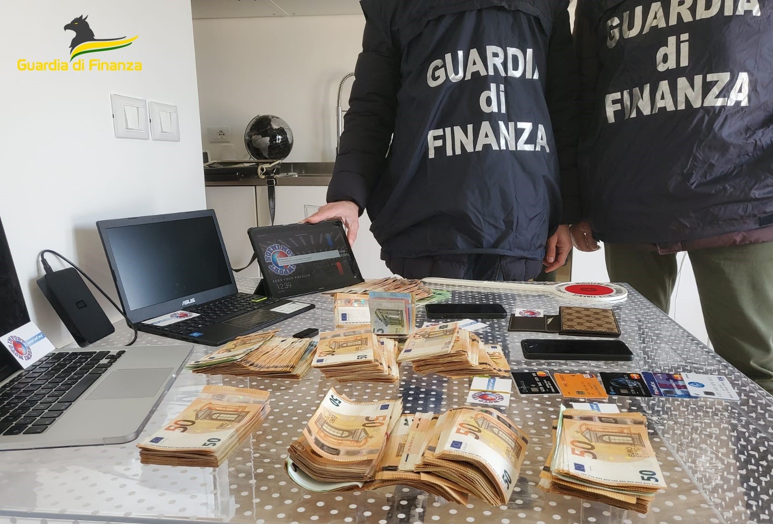 Nel corso delle predette perquisizioni, eseguite anche con l’impiego di una unità cinofila, “Cash dog”, specializzata nel rinvenimento di denaro occultato, è stata altresì sequestrata la somma complessiva di € 56.905 in contanti, composta da banconote di vario taglio, divise in mazzette incellofanate abilmente nascoste presso l’abitazione del motociclista anconetano, in quanto costituente parte del profitto conseguito nello svolgimento dell’attività fiscalmente illecita.