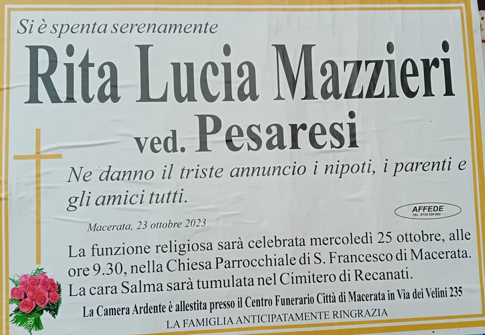 Home » E’ morta Rita Lucia Mazzieri ved. Pesaresi