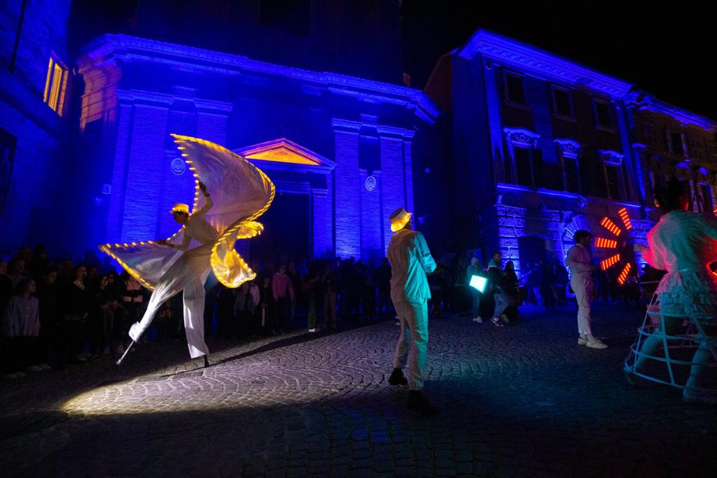 Uno spettacolo scritto e diretto da Marco Bragaglia con la Direzione artistica di Valentina Pigliapoco che ha visto avvicendarsi dal Teatro alle vie e piazze del paese spettacoli di giocoleria, performance aeree e di fuoco ad opera della Zandella e di danza acrobatica a cura della Virtus Acrobatic Team di Macerata. Il tutto cadenzato dalla musica improvvisata dalle Tamburine di Montecassiano che hanno guidato il corteo di bambini per il paese. Serata che ha visto il tutto esaurito a Teatro e le piazze e le vie del paese gremite da oltre 500 persone. Le tappe dell’Halloween Montefanese sono state: Teatro “La Rondinella”, Piazza Bracaccini, Via Altobello, il Circolo The Egg, i Giardini da Bora, per tornare in Piazza Bracaccini e chiudere in bellezza con il gran finale di giocoleria con il fuoco.