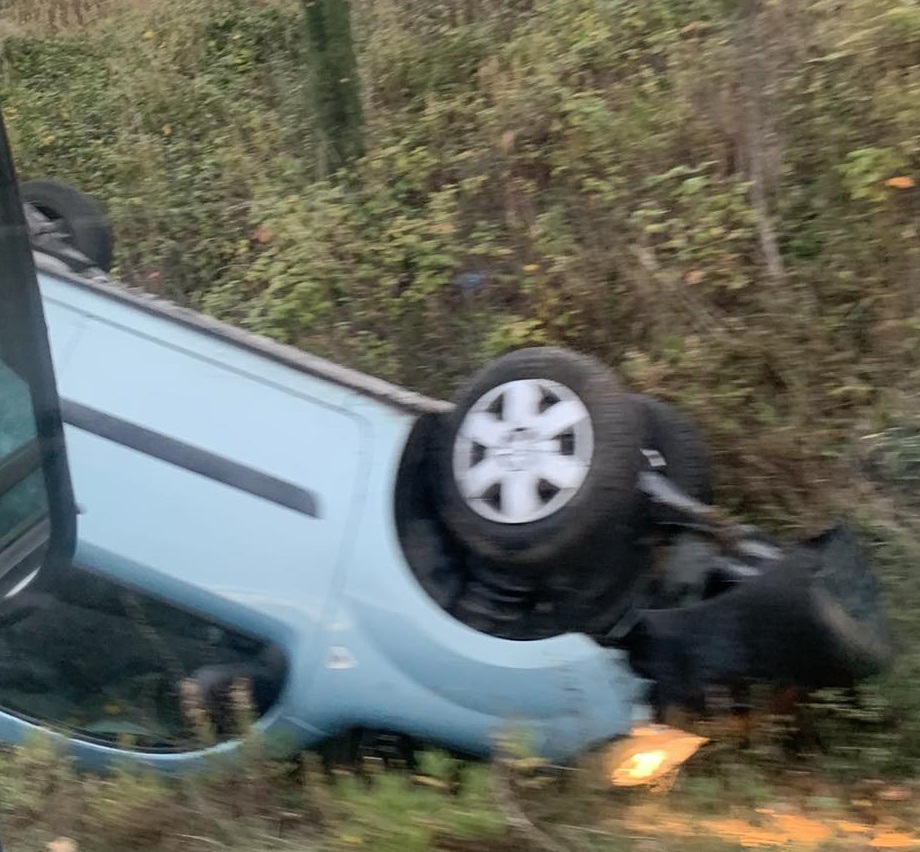 Altro incidente oggi pomeriggio, molto probabilmente favorito dalla sede stradale resa viscida dalla pioggia, lungo la Bretella Paolina. L’auto, una Renault Kangoo, è finita fuori strada e si è cappottata finendo la sua corsa a testa in giù.